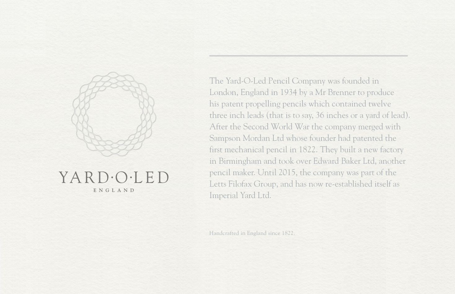 We rebranded the British Pen company Yard-O-Led founded in 1934 and collaborated with the Yard-O-Led team on the new packaging concept. The pen would be delivered in a simple white box surfaced with watercolor paper and debossed with the Yard-O-Led logo. The new owner is encouraged to take the pen and start sketching on the box, a blank canvas.